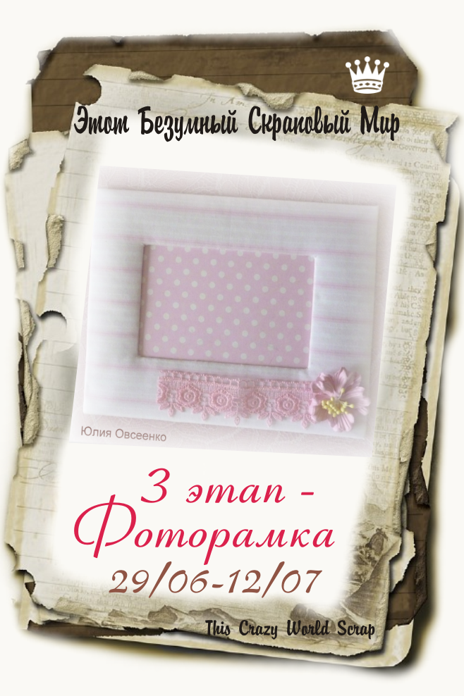 Затянула меня морская тема. Видимо ооочень в отпуск хочется). Теперь у меня морская рамка для фотографии. Сделала я ее для 3 этапа - Фоторамка в рамках СП "Текстильные истории" от блога Этот Безумный Скраповый Мир.